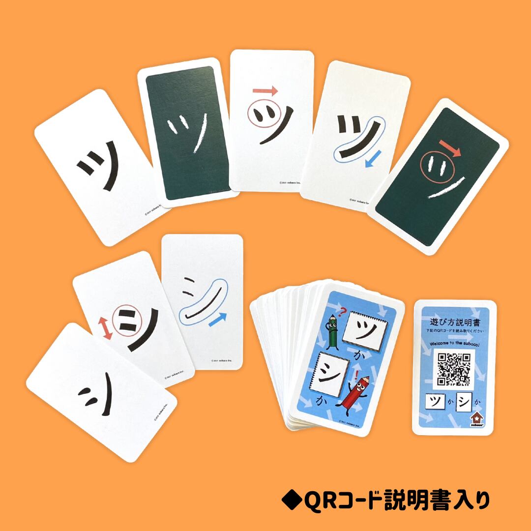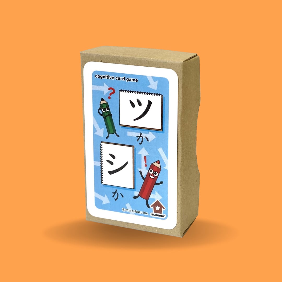 このカードはsubacoカード『くかへか』のツとシの文字の違いのみに焦点を置いています。ツ・シ以外の異似文字の識別課題にはぜひ『くかへか』をご活用ください。subacoに通うたくみ君の取り組みから生まれたカードです。